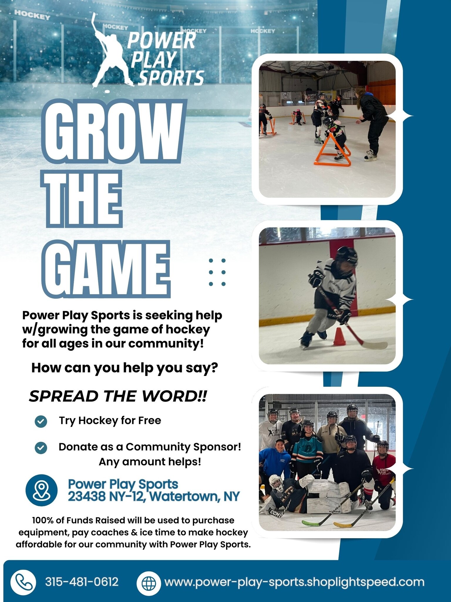 Power Play Sports is seeking HELP from the Community to Grow the Game of Hockey For ALL Ages!