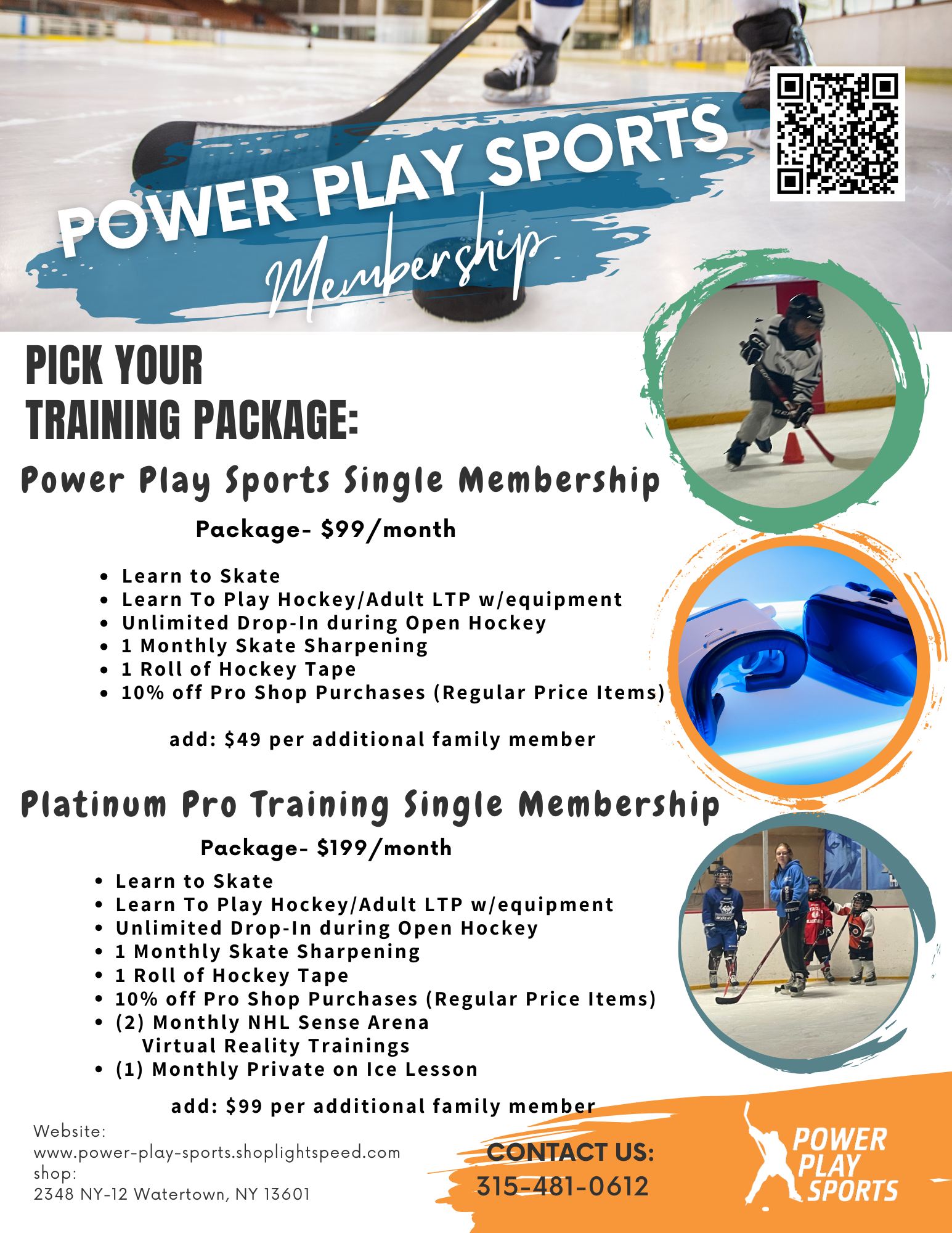 This membership allows your to actively train harder each month by adding a Private lesson, and two NHL Sense Arena Virtual Reality along with getting all the perks of a Power Play Sports Membership.