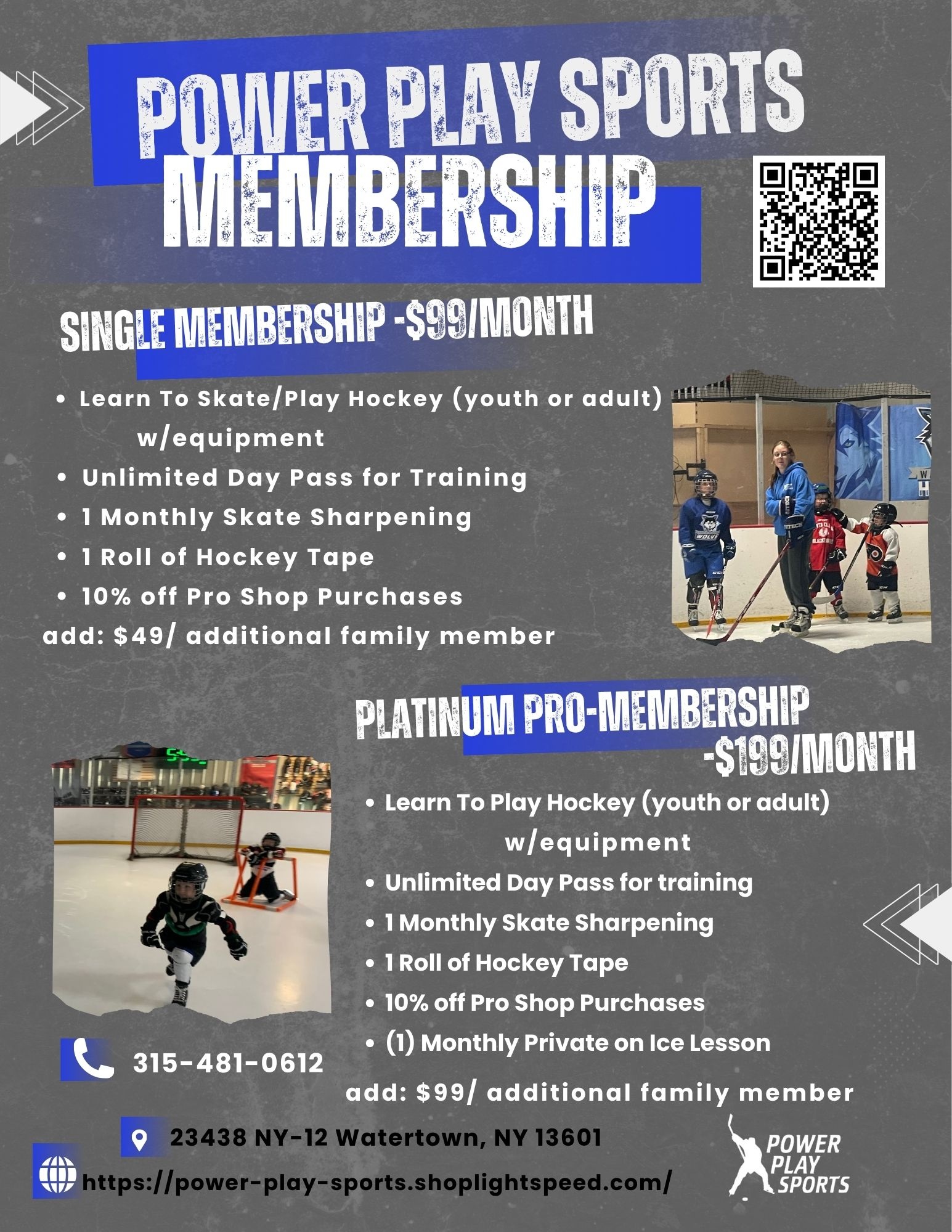 Power Play Single Membership for $99/month with the ability to add additional family members for $49 each/month